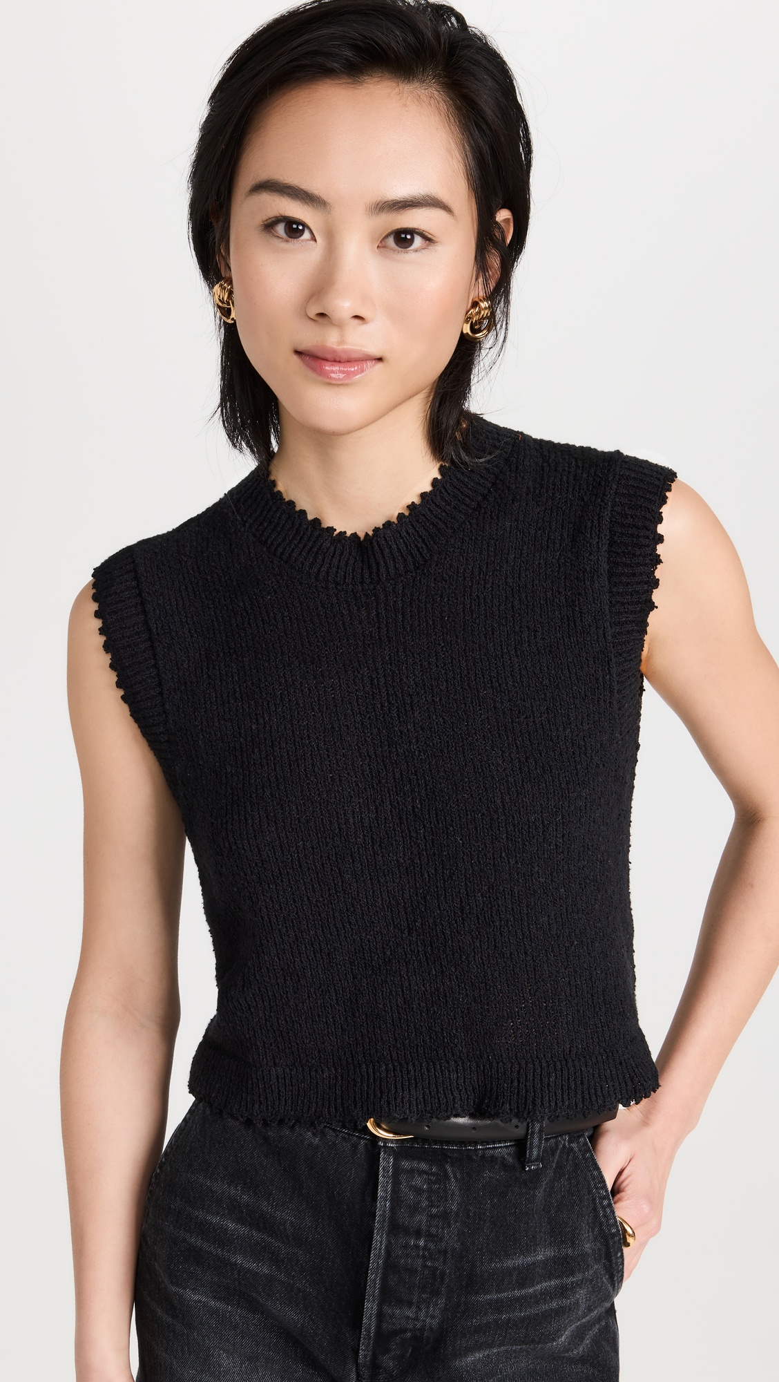 - Fabric: Lightweight loose knit - Ribbed scallop edges - Crew neck - Shell: 100% cotton - Dry clean - Imported, Peru Style #RACHC21626 Size & Fit Model measurements: Size S: Xin (5'8") usually wears size XS-S Measurements from size XS Length: 17in / 43.0cm, from shoulder
