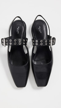 - Upper: Goatskin - Adjustable strap with buckle closure - Polished silver-tone hardware - Slingback strap - Padded footbed - Square toe - Leather sole - Imported, China - This item cannot be gift-boxed Style #RAGBO47422
