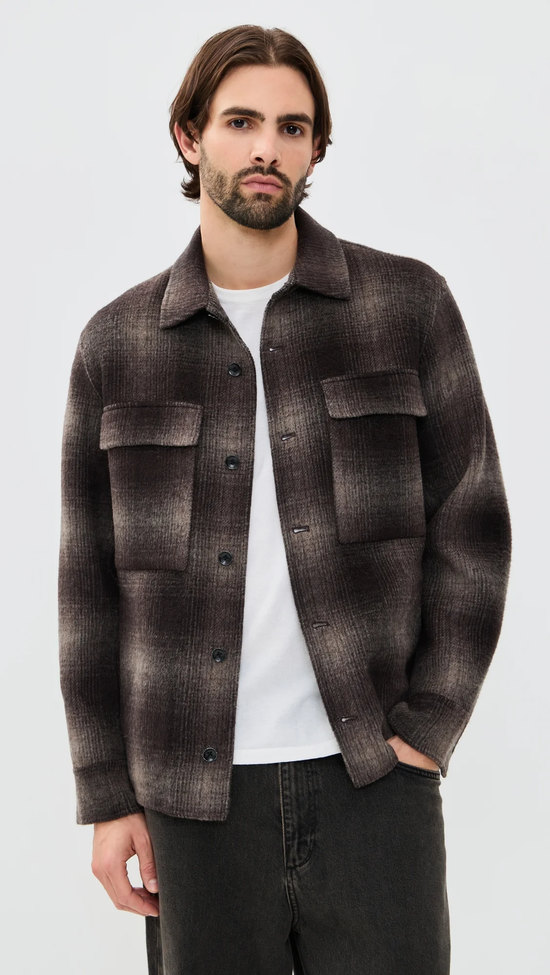 - Fabric: Heavyweight, non-stretch brushed weave - Plaid pattern - Collared neckline - Long sleeves with button cuffs - Button placket - Flap front pockets - Shell: 70% wool/25% polyamide/5% other fibers - Unlined - Dry clean - Imported, Vietnam Style #RAGBO47804 Size & Fit Model measurements: Size M: Gordon (6'1") usually wears size M Measurements from size M Length: 27.5in / 70cm Sleeve: 34.75in / 88cm Chest: 48.75in / 124cm