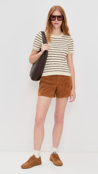 - Fabric: Mid-weight, super-stretch ribbed knit - Stripe pattern - Loose knit sleeve hem - Crew neck - Short sleeves - Shell: 50% cotton/49% polyamide/1% spandex - Dry clean - Imported, China Style #RAGBO47726 Size & Fit Customers say: Runs small; please size up. Model measurements: Size S: Haley (5'9.5") usually wears size S Measurements from size XS Length: 20.5in / 52.0cm, from shoulder