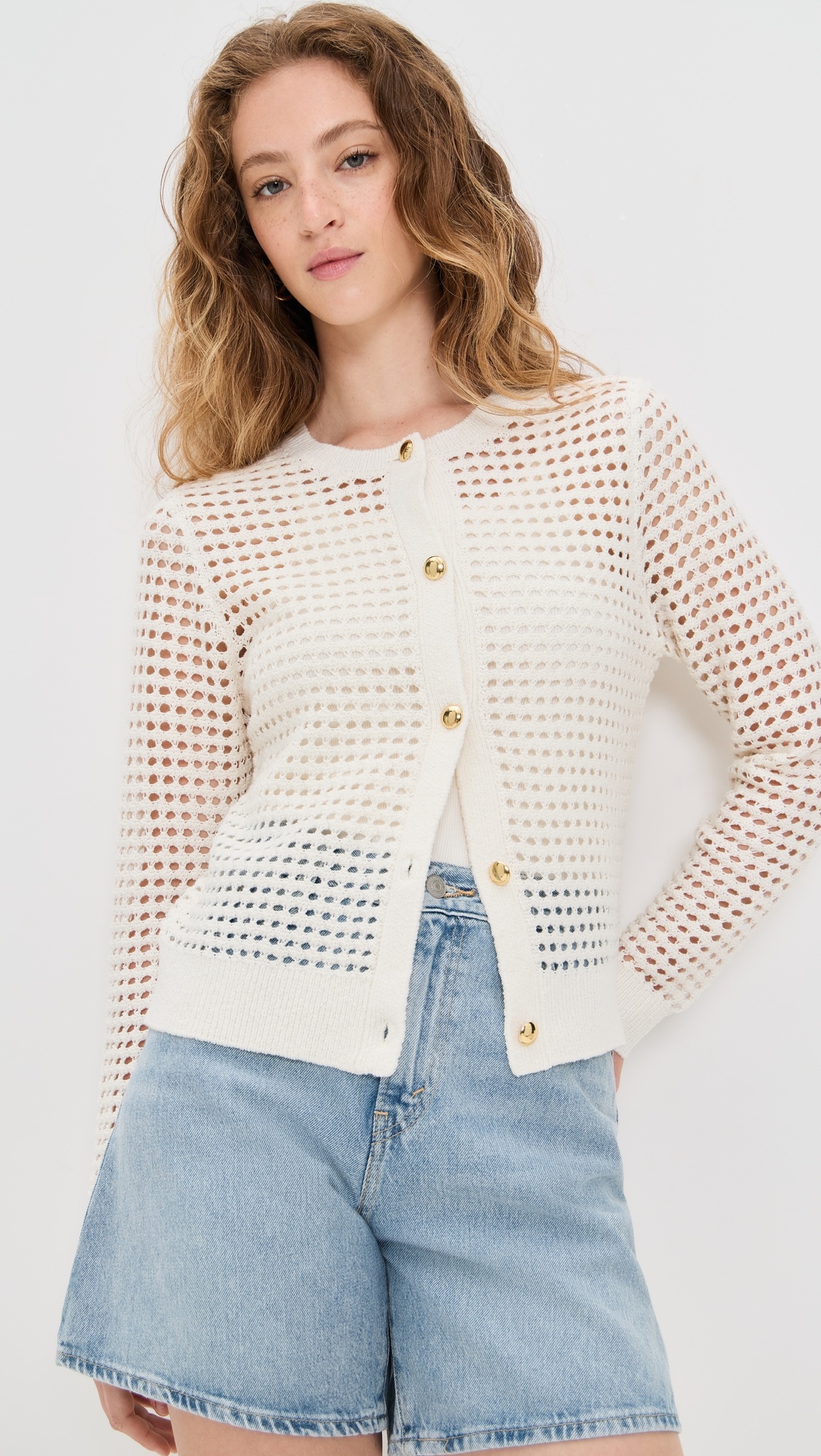 - Fabric: Lightweight open knit - Ribbed trim - Crew neck - Button placket - Shell: 35% cotton/30% polyester/18% silk/17% linen - Wash cold - Imported, China - Long sleeves Style #RAGBO47762 Size & Fit Customers say: Runs small; please size up. Model measurements: Size S: Sophie (5'9") usually wears size S Measurements from size S Length: 20.5in / 52.0cm, from shoulder