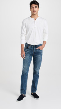 - Fabric: Mid-weight, low-stretch denim - Fading and whiskering - Button closure and zip fly - 5-pocket styling - Shell: 99% cotton/1% elastane - Wash cold - Imported, China Style #RAGBO46910 Size & Fit Designed with a slim fit through the hip and thigh and a narrow leg opening. 32" inseam. Model measurements: Size 31: Laurence (6'2") usually wears size 30-31 Measurements from size 31 Rise: 11in / 28cm Inseam: 30.75in / 78cm Leg opening: 13.5in / 34cm