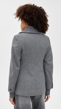 - Fabric: Mid-weight, non-stretch suiting - Ribbed knit edges - Removable knit collared neckline - Collared neck - Long sleeves with button cuffs - Button placket - Flap front pockets - Shell: 58% wool/42% polyester - Trim: 60% cotton/30% polyamide/10% wool - Lined - Lining: 51% viscose/49% polyester - Dry clean - Imported, Vietnam Style #RAGBO47884 Size & Fit Model measurements: Size 0: Alexis (5'8") usually wears size 0-2 Measurements from size 0 Length: 26in / 66.0cm, from shoulder