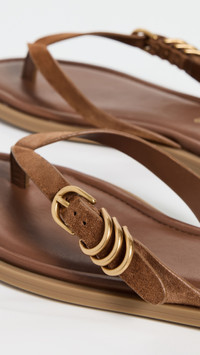 - Upper: Suede - Cushioned leather footbed - Thong strap with gold-tone buckle accent - Lining: Unlined - Slip on - Open toe - Rubber sole - Imported, Vietnam - This item cannot be gift-boxed Style #RAGBO47530