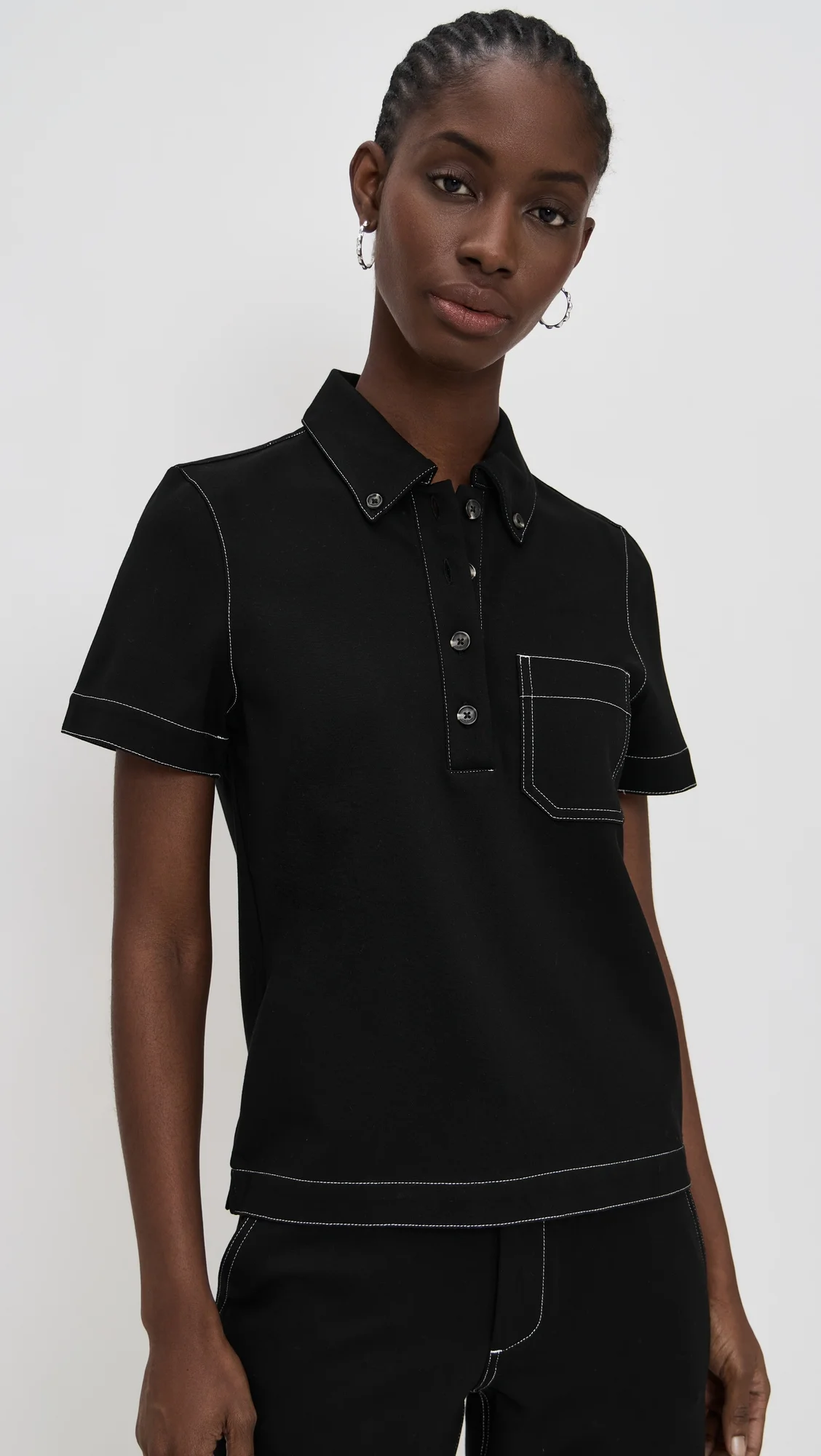 - Fabric: Mid-weight stretch jersey - Contrast stitching - Polo neckline - Long sleeves - Partial button placket - Patch breast pocket - Shell: 66% viscose/30% polyamide/4% elastane - Dry clean - Imported, Vietnam Style #RAGBO48290