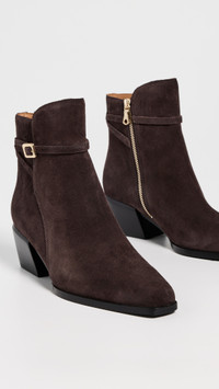 - Upper: Suede - 46% recycled Ortholite insole for exceptional support, stability, and comfort - Gold-tone buckle straps at ankle - Lining: Leather - Chunky heel - Ankle zip - Square toe - Leather sole with rubber heel cap - Imported, Vietnam - This item cannot be gift-boxed Style #RAGBO47854 Size & Fit Heel: 2in / 50mm Shaft: 5in / 13cm Circumference: 11in / 28cm