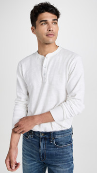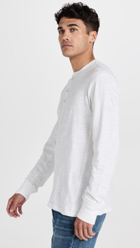 - Fabric: Lightweight slubbed jersey - Exposed stitching and embroidered branding at the wrist - Ribbed cuffs and straight hem - Henley neckline and long sleeves - Shell: 100% cotton - Wash cold - Imported, Peru Style #RAGBO46154 Size & Fit Runs true to size. Designed with a slim cut for a fitted look. Model measurements: Size M: Laurence (6'2") usually wears size M Measurements from size M Length: 26.75in / 68cm Sleeve: 33.75in / 86cm Chest: 41in / 104cm