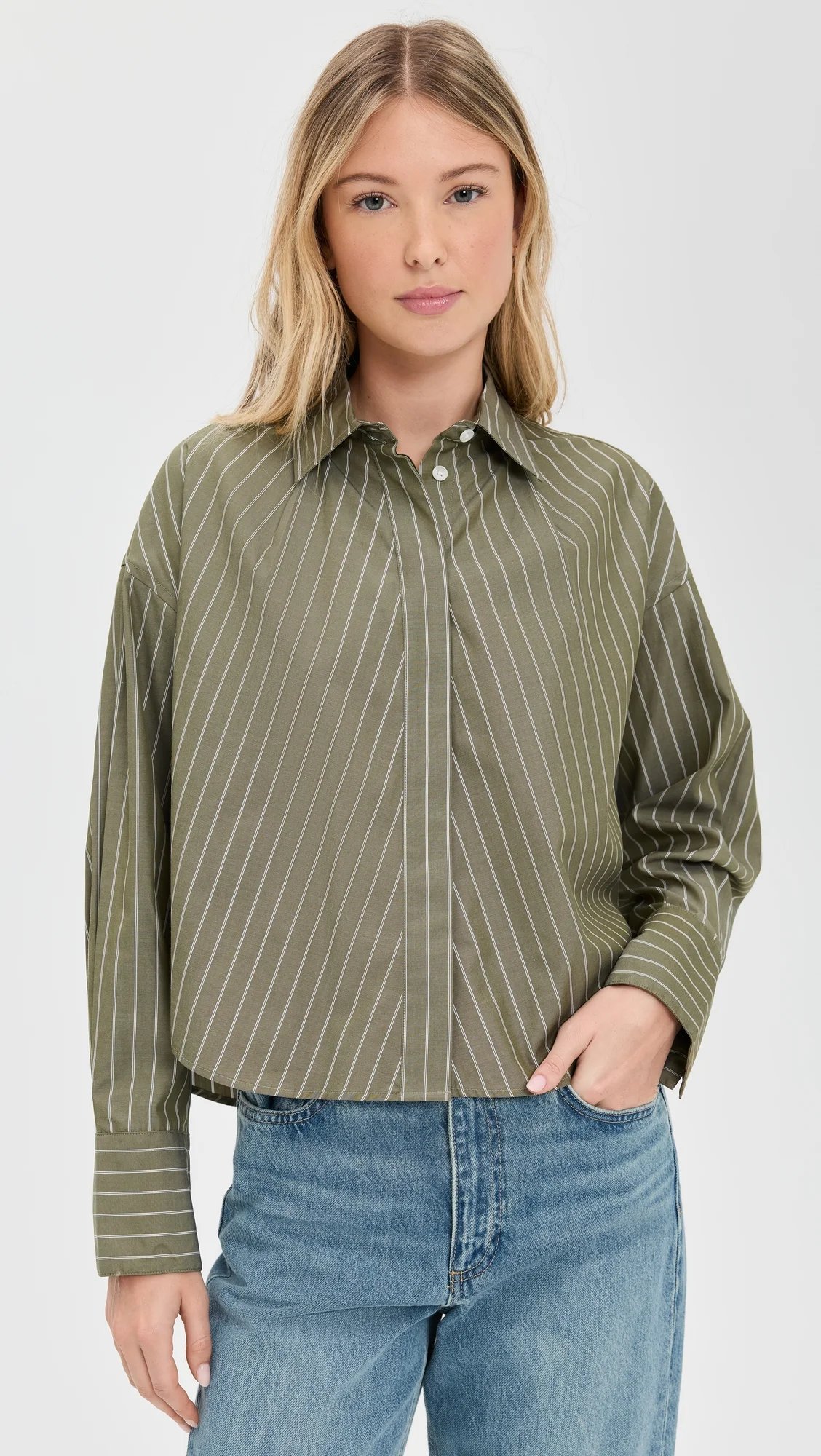 - Fabric: Lightweight, non-stretch poplin - Striped print - Collared neck - Long sleeves with button cuffs - Covered button placket - Shell: 100% cotton - Wash warm - Imported, Vietnam Style #RAGBO48159
