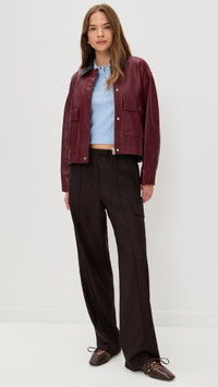 - Fabric: Heavyweight, non-stretch lambskin - Collared neck - Long sleeves - Snap flap and hidden zip placket - Flap front pockets - Shell: 100% leather - Lined - Lining: 100% polyester - Leather clean - Imported, India Style #RAGBO47920