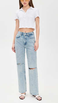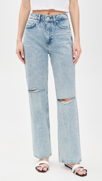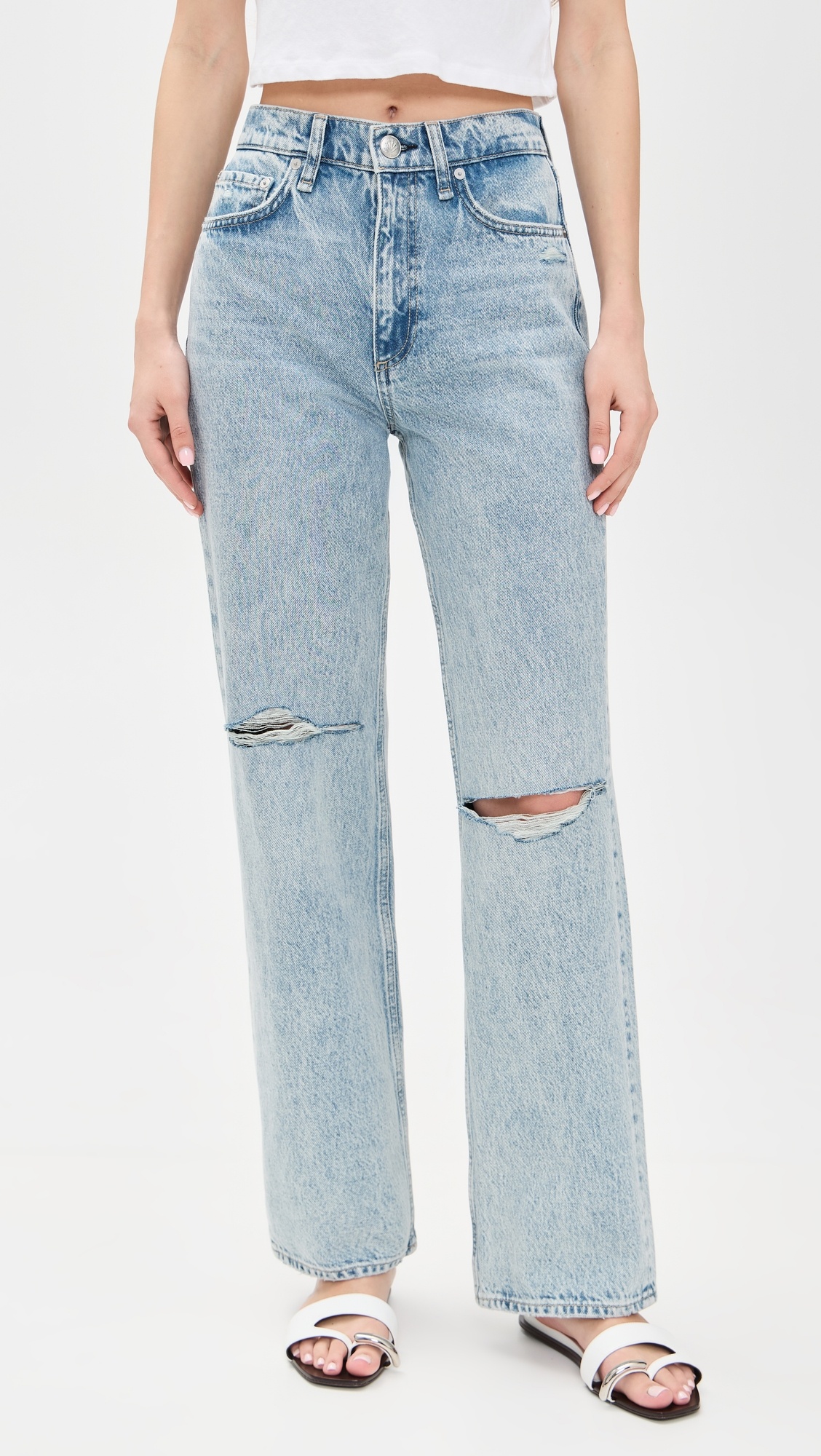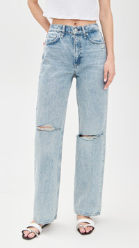 - Fabric: Mid-weight, non-stretch denim - Holes at knee - Button closure and zip fly - 5-pocket styling - Shell: 100% cotton - Wash cold - Imported, Turkey Style #RAGBO47742 Size & Fit Intended for a high-rise, straight-leg cut. Non-stretch denim will soften and give with wear. Shopbop’s expert stylist says: Runs one full size large; please size down Customers say: Runs large; please size down. Model measurements: Size 25: Alina (5'10") usually wears size 25-26 Measurements from size 25 Rise: 11.5in / 29cm Inseam: 31in / 79cm Leg opening: 19in / 48cm