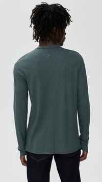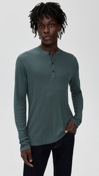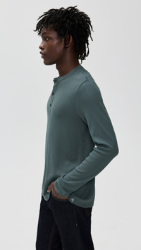 - Fabric: Mid-weight waffle knit - Round neckline - Long sleeves - Partial button placket - Shell: 95% viscose/5% spandex - Wash cold - Imported, Vietnam Style #RAGBO47832 Size & Fit Model measurements: Size M: Corey (6'1") usually wears size M Measurements from size M Length: 27.5in / 70cm Sleeve: 35in / 89cm Chest: 41in / 104cm