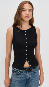 - Fabric: Lightweight stretch knit - Silver-tone hardware - Boat neck - Sleeveless - Button placket - Shell: 48% polyester/48% viscose/4% spandex - Wash cold - Imported, Vietnam Style #RAGBO47874
