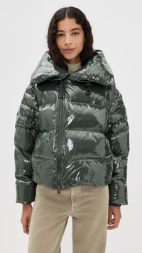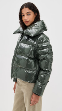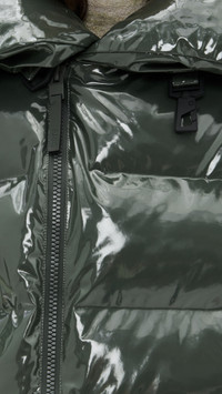 - Fabric: Mid-weight, non-stretch technical weave - Patent finish and puffed design - Interior drawcord and toggle hem - Lobster claw closure at collar - Ribbed elastic cuffs - Breathable, water repellent, and wind resistant material - Collared neck - Long sleeves - Two-way zip closure - On-seam side pockets - Zip interior pocket - Shell: 100% polyurethane - Lined - Lining: 100% nylon - Fill: 100% polyester - Wash cold - Imported, China Style #RAINS30078 Size & Fit Model measurements: Size XS: Rocio (5'11") usually wears size XS Measurements from size XS Length: 21.25in / 54.0cm, from shoulder