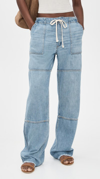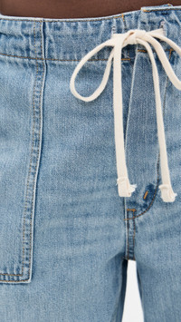 - Fabric: Mid-weight, non-stretch denim - Partial smocked elastic waistband at back - Drawstring at front - Button fly - Slant hip pockets and patch back pockets - Shell: 64% cotton/36% lyocell - Wash cold - Imported, China Style #REDON31095