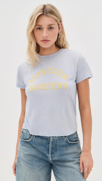 - Fabric: Lightweight stretch jersey - 'Montauk Surfers' graphic at front - Crew neck - Short sleeves - Shell: 50% cotton/50% polyester - Wash cold - Made in the USA Style #REDON31097