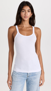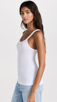 - Fabric: Ribbed jersey - Slim straps - Waist-length style - Scoop neck - Sleeveless - Shell: 100% cotton - Wash cold - Made in the USA Style #REDON30130 Size & Fit Measurements from size S Length: 22.5in / 57.0cm, from shoulder