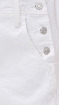 - Fabric: Mid-weight, non-stretch denim - Buttons at sides - Multiple exterior pockets - Mini length - Square neckline - Adjustable shoulder straps - Shell: 100% cotton - Unlined - Wash cold - Imported, Mexico Style #REDON31094