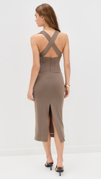 - Fabric: Mid-weight, low-stretch slinky jersey - Boned seams at bodice - Slit at back - Midi length - V neck - Sleeveless - Hook-and-eye and hidden zip at back - Shell: 78% polyester/17% nylon/5% elastane - Lined - Dry clean - Imported, Vietnam Style #RVALL30181 Size & Fit Model measurements: Size 4: Mia (5'9.5") usually wears size 4 Measurements from size 4 Length: 47.25in / 120.0cm, from shoulder