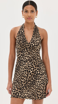 - Fabric: Lightweight, non-stretch crepe - Produced via carbon-neutral manufacturing - Tie at back - Leopard print - Halter neckline - Sleeveless - Pullover design, no closure - Shell: 100% viscose - Unlined - Dry clean - Made in the USA of imported materials Style #REFOR41456