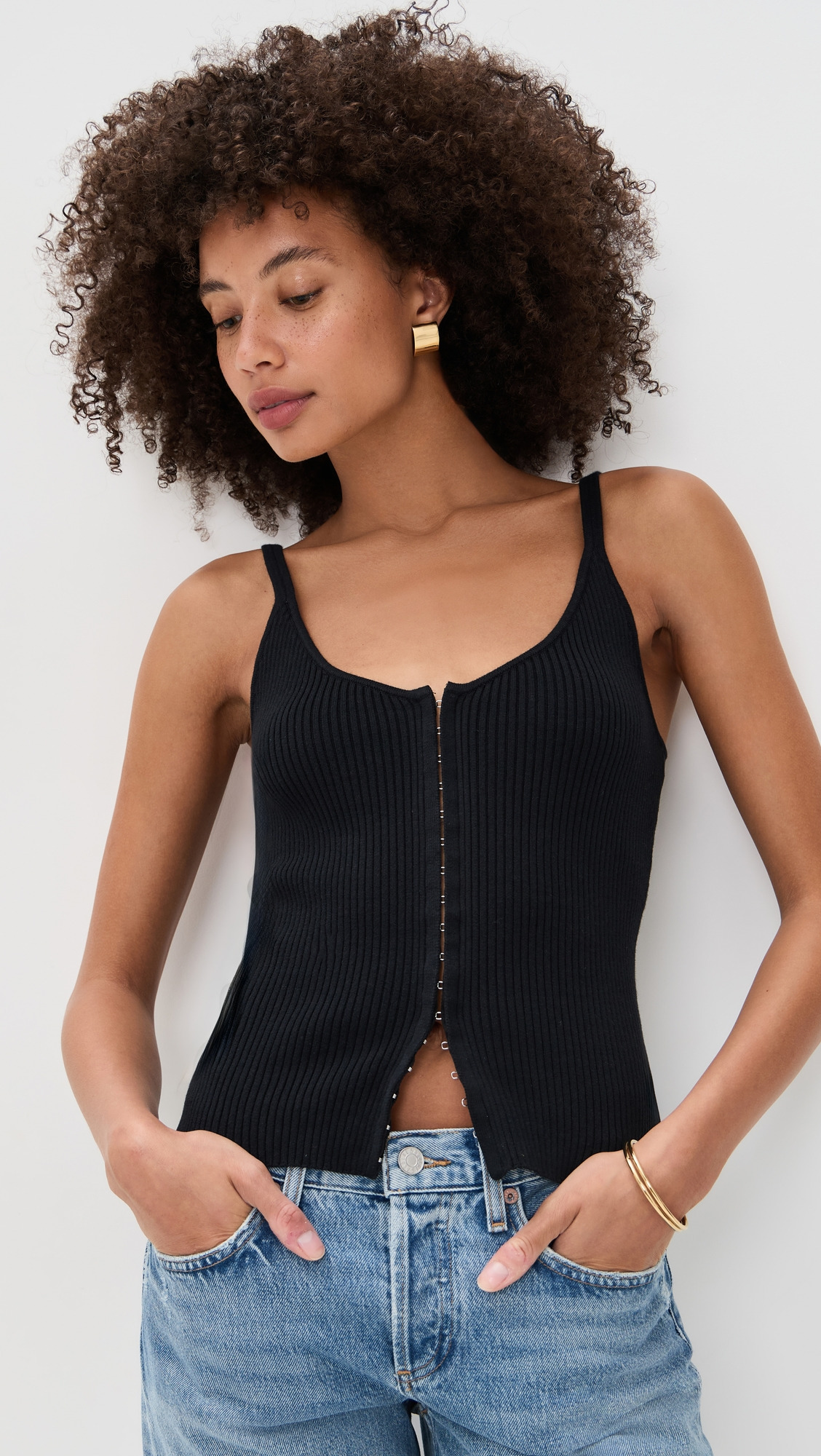 - Fabric: Mid-weight, super-stretch ribbed knit - Reformation is part of The Climate Pledge, a commitment to reaching net-zero carbon emissions by 2040 - Scoop neck - Sleeveless - Hook-and-eye placket - Shell: 94% cotton/5% nylon/1% spandex - Hand wash - Imported, China Style #REFOR42034