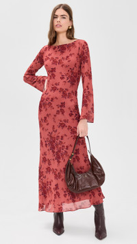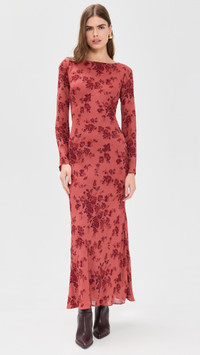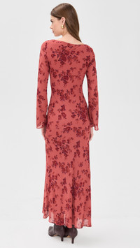 - Fabric: Lightweight, low-stretch georgette - Bias cut at hem - Floral pattern - Reformation is part of The Climate Pledge, a commitment to reaching net-zero carbon emissions by 2040 - Maxi length - Boat neck - Long bell sleeves - Shell: 100% viscose - Lined - Lining: 100% polyester - Dry clean - Imported, Vietnam Style #REFOR42232 Size & Fit Model measurements: Size XS: Gwen (5'10") usually wears size XS Measurements from size XS Length: 53.5in / 136.0cm, from shoulder
