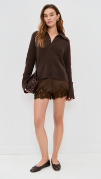 - Fabric: Lightweight, low-stretch satin - Reformation is part of The Climate Pledge, a commitment to reaching net-zero carbon emissions by 2040 - Lace hem - Partial elastic waistband - Shell: 88% acetate/12% polyester - Dry clean - Imported, Vietnam Style #REFOR42203 Size & Fit Model measurements: Size XS: Mia (5'9.5") usually wears size XS Measurements from size XS Rise: 11in / 28cm Inseam: 4in / 10cm