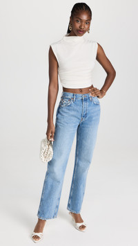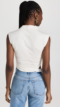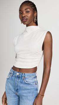 - Fabric: Mid-weight knit - Reformation is part of The Climate Pledge, a commitment to reaching net-zero carbon emissions by 2040 - Ruched sides - Produced via carbon-neutral manufacturing - Cropped profile - Mock neck - Shell: 88% cotton/12% spandex - Wash cold - Imported, Mexico - Sleeveless Style #REFOR40827 Size & Fit Customers say: Runs small; please size up. Model measurements: Size S: Bo (5'10.5") usually wears size XS-S Measurements from size S Length: 17.25in / 44.0cm, from shoulder