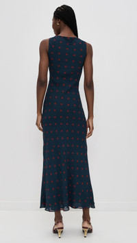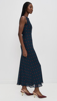 - Fabric: Fabric: Mid-weight, non-stretch crepe - Reformation is part of The Climate Pledge, a commitment to reaching net-zero carbon emissions by 2040 - Polka-dot print - Maxi length - Boat neck - Sleeveless - Pullover design, no closure - Shell: 100% viscose - Lined - Dry clean - Made in the USA of imported materials Style #REFOR42319 Size & Fit Model measurements: Size XS: Bo (5'10.5") usually wears size XS-S Measurements from size XS Length: 56in / 142.0cm, from shoulder