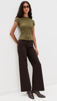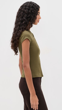 - Fabric: Lightweight, super-stretch ribbed knit - Crew neck - Short sleeves - Button placket - Shell: 97% cotton/3% spandex - Wash cold - Made in the USA Style #REFOR42181 Size & Fit Model measurements: Size XS: Rocio (5'11") usually wears size XS Measurements from size XS Length: 21.25in / 54.0cm, from shoulder