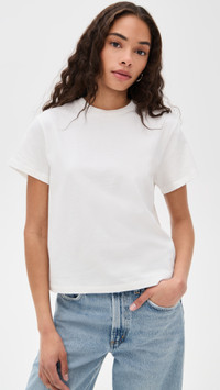 - Fabric: Lightweight slubbed jersey - Reformation is part of The Climate Pledge, a commitment to reaching net-zero carbon emissions by 2040 - Crew neck - Shell: 100% cotton - Wash cold - Imported, Mexico - Short sleeves Style #REFOR41922 Size & Fit Customers say: Runs large; please size down. Model measurements: Size XS: Anisa (5'8.5") usually wears size XS Measurements from size XS Length: 21.25in / 54.0cm, from shoulder