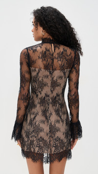 - Fabric: Lightweight stretch lace - Reformation is part of The Climate Pledge, a commitment to reaching net-zero carbon emissions by 2040 - Mini length - Mock neck - Long sleeves - Hook-and-eye and hidden zip at back - Shell: 100% nylon - Lined - Lining: 100% polyester - Dry clean - Imported, China Style #REFOR42205 Size & Fit Model measurements: Size 0: Eyshila (5'10") usually wears size 0 Measurements from size 0 Length: 32.75in / 83.0cm, from shoulder