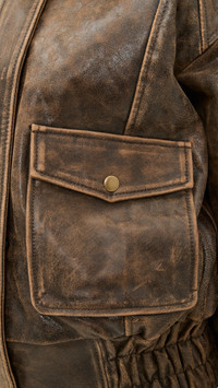 - Fabric: Mid-weight, low-stretch leather - Distressed - Collared neck - Long sleeves with snap cuffs - Snap flap and hidden zip placket - Covered elastic waistband - Flap front pockets - Shell: 100% leather - Lined - Lining: 100% polyester - Leather clean - Imported, India Style #REFOR42249 Size & Fit Model measurements: Size S: Annalise (5'8") usually wears size XS Measurements from size S Length: 23.25in / 59.0cm, from shoulder