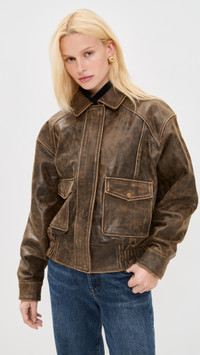 Veda Daphne Leather Bomber Jacket