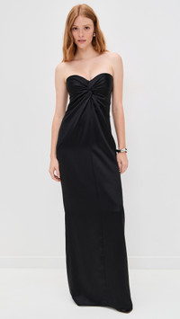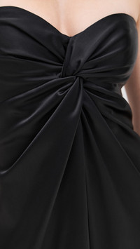 - Fabric: Mid-weight, low-stretch satin - Non-slip rubber binding at neckline - Boned bodice - Maxi length - Strapless - Sleeveless - Hook-and-eye and hidden zip at back - Shell: 76% acetate/24% polyester - Partially lined - Lining: 97% polyester/3% spandex - Dry clean - Imported, China Style #RFETE30529