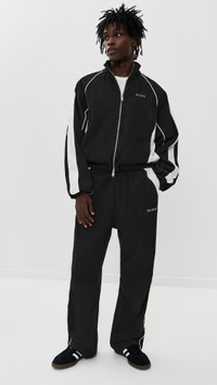 - Fabric: Lightweight, non-stretch taffeta - Contrast paneling and piping - Embroidered logo at breast - Mock neck - Long sleeves with elastic cuffs - Two-way zip closure - Covered elastic waistband - Slant hip pockets - Shell: 100% polyester - Lined - Lining: 100% lyocell - Dry clean - Made in the USA of imported materials Style #RHUDE30011 Size & Fit Model measurements: Size M: Corey (6'1") usually wears size M Measurements from size S Length: 22in / 56cm Sleeve: 36.25in / 92cm Chest: 48in / 122cm
