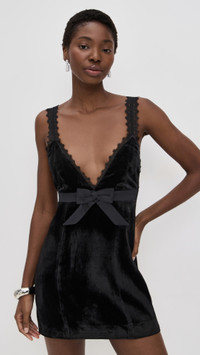 - Fabric: Mid-weight, non-stretch velvet - Lace trim at neck - Bow detail at front - Mini length - V neck - Sleeveless - Hook-and-eye and hidden zip at back - Shell: 50% silk/50% viscose - Lined - Lining: 100% polyester - Dry clean - Imported, China Style #RONNY45487 Size & Fit Model measurements: Size S: Bo (5'10.5") usually wears size XS-S Measurements from size S Length: 31.5in / 80.0cm, from shoulder