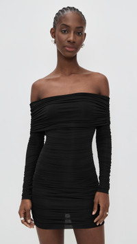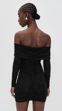 - Fabric: Lightweight stretch mesh - Allover ruching - Mini length - Off-shoulder neckline - Long sleeves - Hook-and-eye and hidden zip at back - Shell: 88% polyester/12% spandex - Lined - Dry clean - Imported, China Style #RONNY45489 Size & Fit Model measurements: Size XS: Cher (5'11") usually wears size XS Measurements from size XS Length: 22in / 56.0cm, from center back