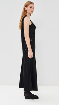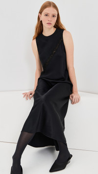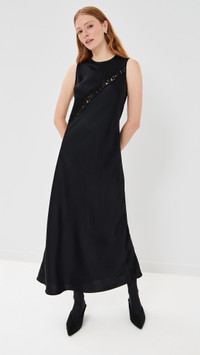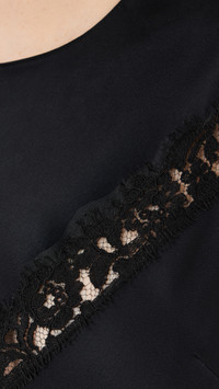 - Fabric: Mid-weight, low-stretch satin - Sheer lace details at front and back - Maxi length - Crew neck - Sleeveless - Button keyhole at back - Shell: 82% acetate/18% viscose - Trim: 60% viscose/24% cotton/16% polyamide - Unlined - Dry clean - Made in the USA Style #RGETT30257 Size & Fit Model measurements: Size S: Haley (5'9.5") usually wears size S Measurements from size L Length: 52in / 132.0cm, from shoulder