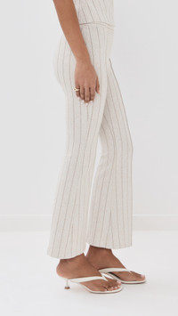 - Fabric: Mid-weight jacquard jersey with stretch - Pinstripe pattern - Covered elastic waistband - Shell: 82% viscose/13% polyamide/5% elastane - Dry clean - Made in the USA Style #RGETT30249 Size & Fit Model measurements: Size XS: Eyshila (5'10") usually wears size XS Measurements from size S Rise: 9.75in / 25cm Inseam: 28in / 71cm Leg opening: 22in / 56cm
