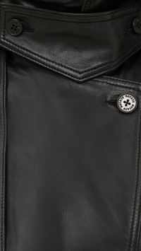 - Fabric: Mid-weight, non-stretch leather - Adjustable buckle tabs at cuffs - Collared neck - Long sleeves - Button closure and zip fly - Welt front pockets - Shell: 100% lambskin - Lined - Lining: 100% polyester - Leather clean - Imported, India Style #ROTAT30128 Size & Fit Model measurements: Size 34: Eyshila (5'10") usually wears size 30 Measurements from size 34 Length: 29.5in / 75.0cm, from shoulder