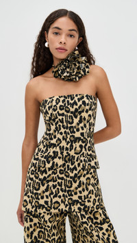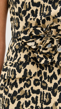 - Fabric: Mid-weight, non-stretch jacquard - Leopard pattern - Tie at waist with flower embellishment - Can be worn as a dress - Strapless - Sleeveless - Hook-and-eye and hidden zip at side - Flap front pockets - Shell: 100% recycled polyester - Lined - Lining: 90% recycled polyester/10% elastane - Hand wash - Imported, China Style #ROTAT30133 Size & Fit Model measurements: Size 32: Anisa (5'8.5") usually wears size 30 Measurements from size 32 Length: 22in / 56.0cm, from center back