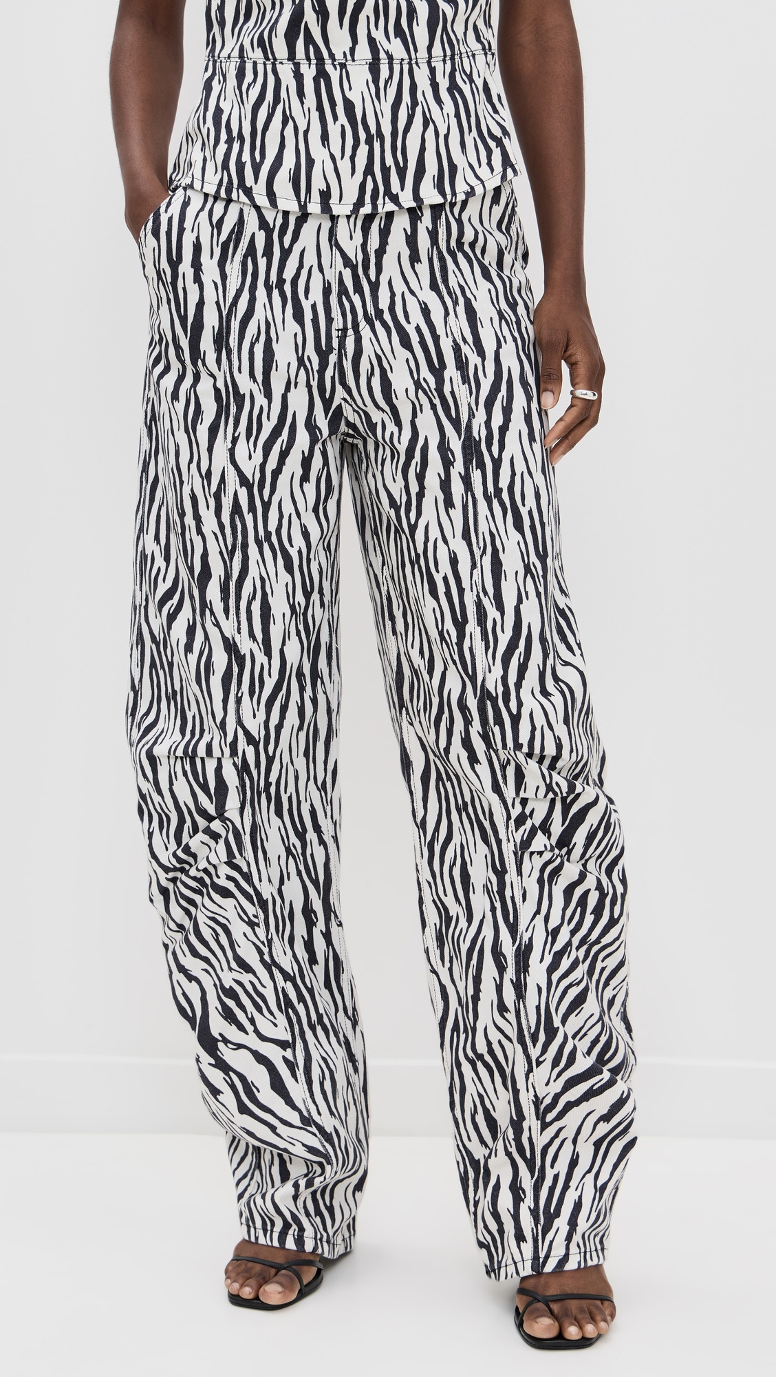- Fabric: Mid-weight, non-stretch twill - Zebra stripe pattern - Button closure and zip fly - Slant hip pockets and patch back pockets - Shell: 100% cotton - Wash cold - Imported, Turkey Style #ROTAT30126 Size & Fit Model measurements: Size 34: Cher (5'11") Measurements from size 34 Rise: 12.5in / 32cm Inseam: 32.25in / 82cm Leg opening: 15.75in / 40cm