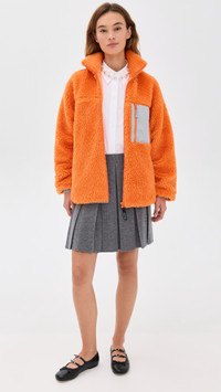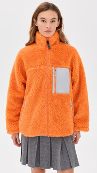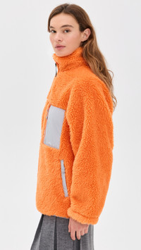 - Fabric: Mid-weight, non-stretch sherpa - Technical weave trim - Zip front and back pockets - Collared neck - Long sleeves with elastic cuffs - Zip at front - Shell: 100% recycled polyester - Lined - Lining: 100% polyester - Dry clean - Imported, China Style #SLIAN30315 Size & Fit Model measurements: Size XS: Mia (5'9.5") usually wears size XS Measurements from size S Length: 26.75in / 68.0cm, from shoulder