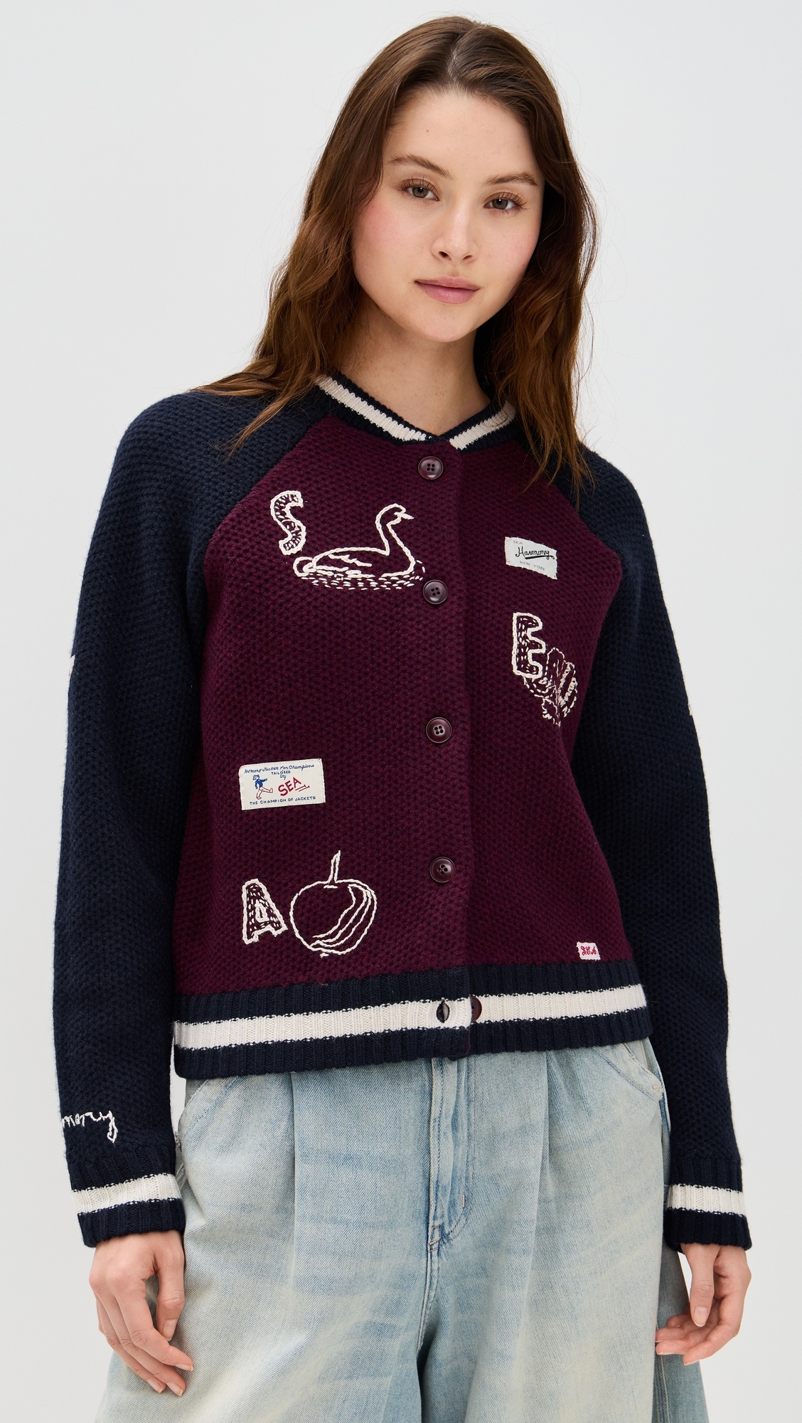 - Fabric: Mid-weight knit - Contrast embroidery - Collared neck - Long raglan sleeves - Button placket - Shell: 100% wool - Trim: 100% cotton - Dry clean - Imported, China Style #SEAAA22419