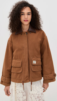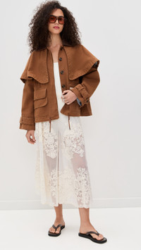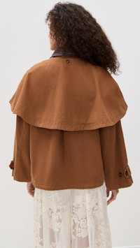 - Fabric: Heavyweight, non-stretch canvas - Removable capelet at shoulders - Adjustable drawstring hem - Logo patch at front flap - Collared neck - Long sleeves with button cuffs - Covered button placket - Flap front pockets - Shell: 100% cotton - Lined - Lining: 50% cotton/50% polyester - Dry clean - Imported, India Style #SEAAA22435