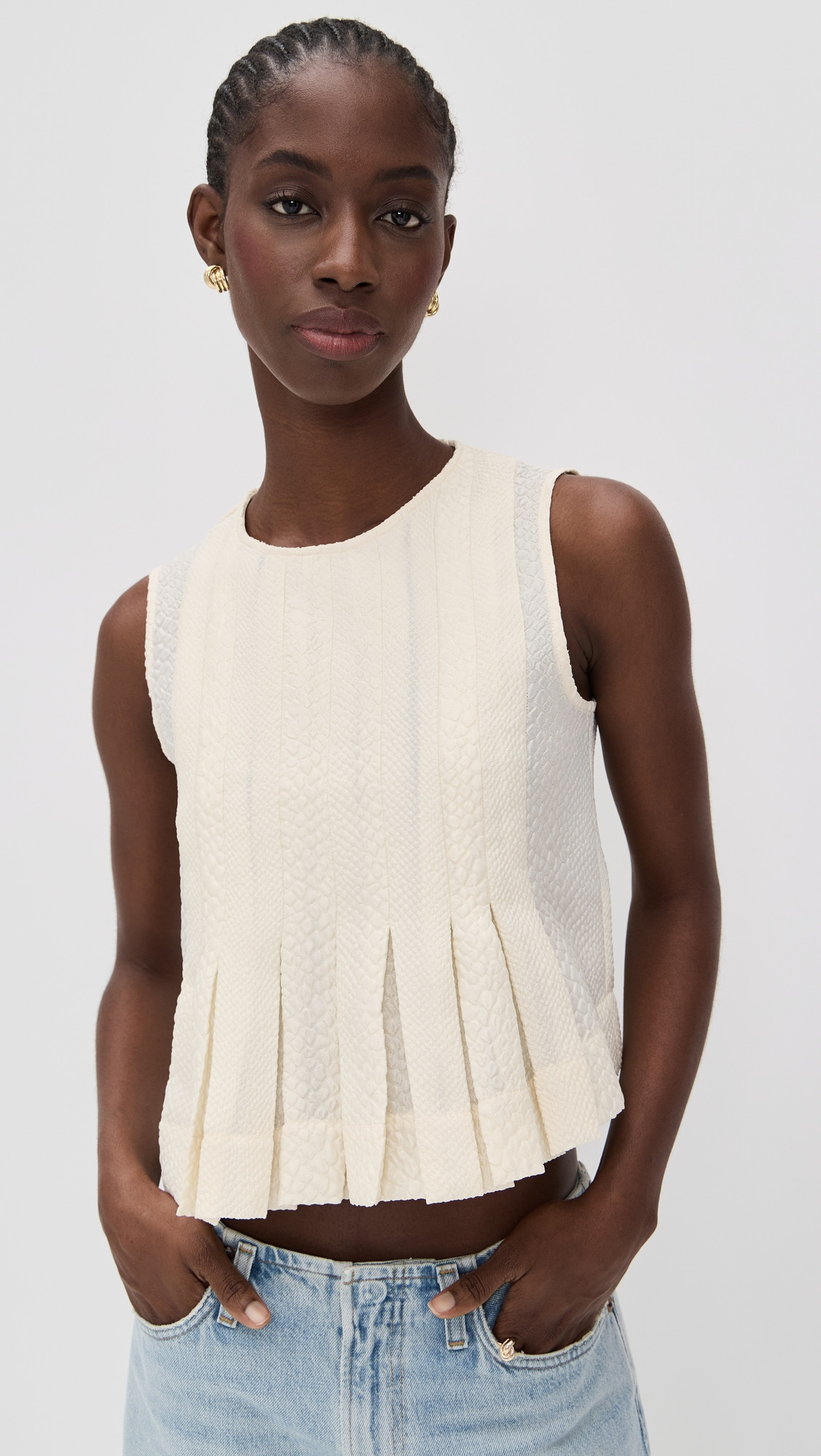 - Fabric: Lightweight, non-stretch textured weave - Pleated design - Crew neck - Sleeveless - Hook-and-eye and hidden zip at back - Shell: 100% polyester - Dry clean - Imported, Turkey Style #SEAAA22477