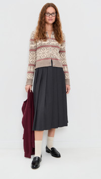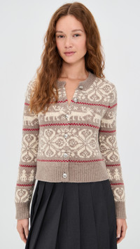 - Fabric: Mid-weight, low-stretch fair isle knit - Reindeer graphic - Ribbed trim - Crew neck - Long sleeves - Button placket - Shell: 100% merino wool - Dry clean - Imported, China Style #SEAAA22603 Size & Fit Model measurements: Size XS: Maia (5'10") usually wears size XS Measurements from size XS Length: 20.5in / 52.0cm, from shoulder