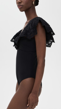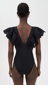 - Lace flutter sleeves - Moderate coverage - Shell: 82% nylon/18% spandex - Trim: 100% cotton - Lined - Wash cold - Imported, China Style #SEAAA22451