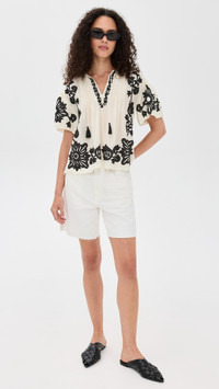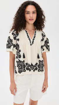 - Fabric: Lightweight, non-stretch weave - Floral embroidery and applique - Pintucking at front and back - Split neckline - Elbow-length sleeves - Tie keyhole at neckline - Semi-sheer - Shell: 52% cotton/48% viscose - Dry clean - Imported, India Style #SEAAA22431