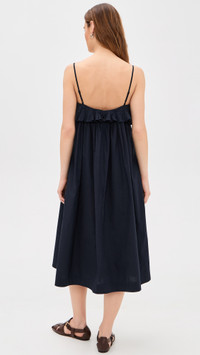 - Fabric: Lightweight, low-stretch twill - Tiered ruffles at bodice - Midi length - Square neckline - Adjustable shoulder straps - Hidden zip at back - On-seam side pockets - Shell: 100% cotton - Unlined - Wash cold - Imported, India Style #SEAAA22666 Size & Fit Model measurements: Size 0: Mia (5'9.5") usually wears size 0 Measurements from size 0 Length: 45in / 114.0cm, from shoulder